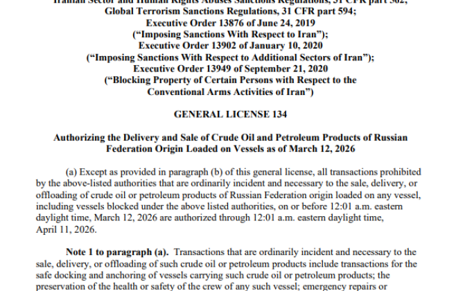 EUA Autoriza Venda de Petróleo Russo em Caráter Excepcional!