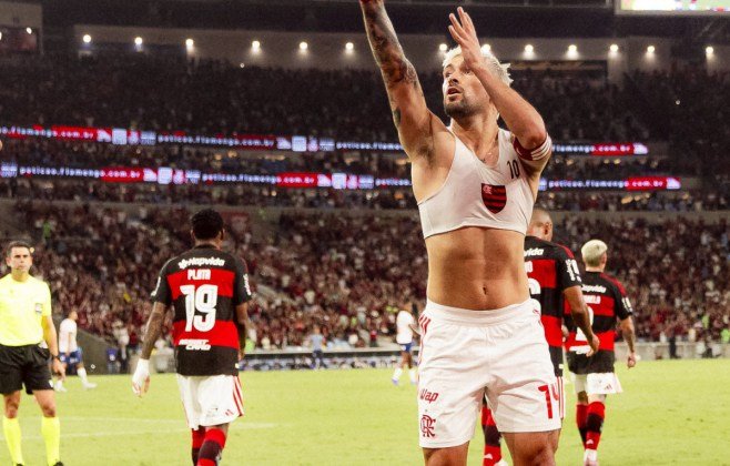 Arrascaeta usou a 14 em homenagem a Oscar Schmidt, lenda do basquete que morreu na sexta-feira (17). Na comemoração, ele tirou a camisa e exibiu o número para a torcida. Logo depois, pegou uma das bolas de jogo e fez um arremesso. Ele recebeu cartão amarelo por tirar a camisa.