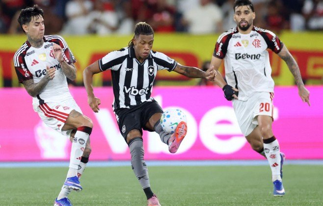 O Flamengo venceu o Botafogo por 3 a 0 no estádio Nilton Santos na noite deste sábado (14), pela 6ª rodada do Campeonato Brasileiro. Os gols foram marcados por Samuel Lino, Léo Pereira e Pedro. No lado botafoguense, Barboza recebeu cartão vermelho no final do primeiro tempo, por falta no centroavante rubro-negro. O resultado faz a equipe de Leonardo Jardim subir momentaneamente à 3ª posição, com 10 pontos, enquanto o time do pressionado Martín Anselmi permanece na 17ª colocação, abrindo a zona de rebaixamento.