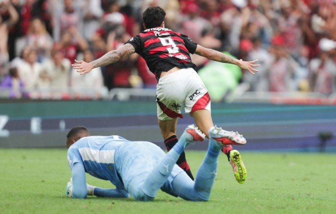 Após a defesa do argentino, o Rubro-Negro tomou o controle do duelo e foi letal. Aos 37, Emerson Royal tocou para Pedro, que invadiu a área e foi derrubado por Bruno Fuchs. Wilton Pereira Sampaio assinalou pênalti e Jorginho, com maestria, mandou para dentro. Logo depois, Pedro roubou a bola na intermediária ofensiva e disparou. Arrascaeta tocou na medida e o camisa 9, de frente para a meta, não perdoou.